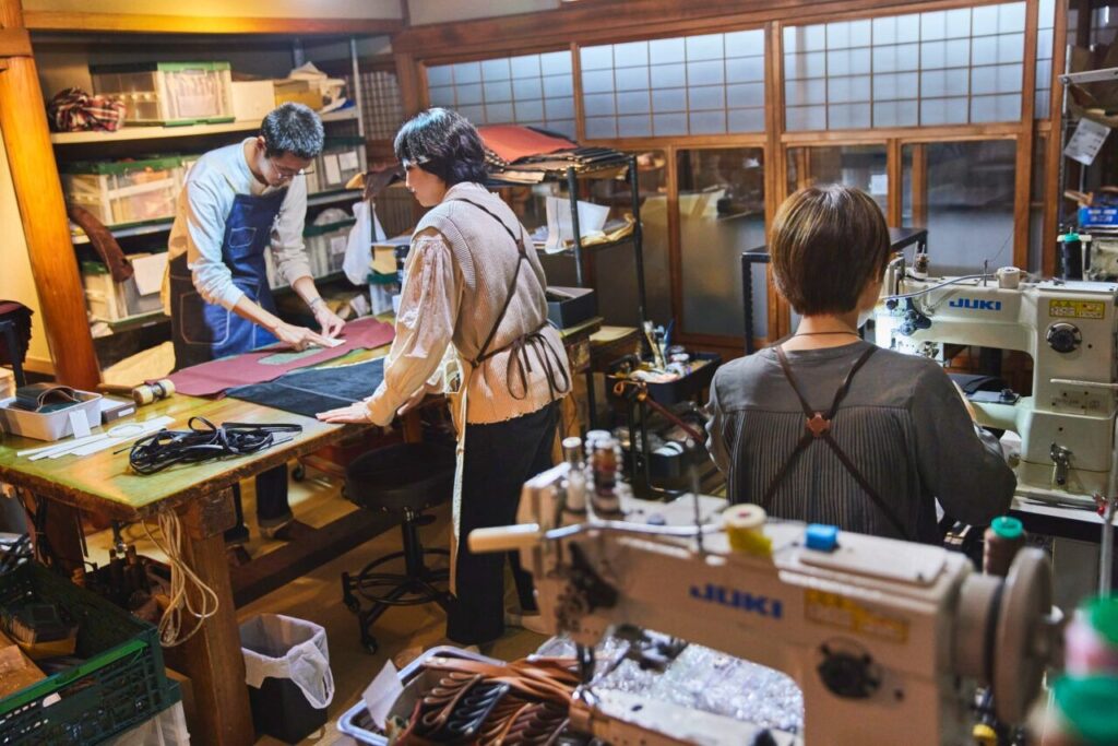 堺市に本社を置くwajiは、革・布製品をメインに、企画から、デザイン、販売までを一貫して行う“ものづくりメーカー”。大阪市阿倍野区阪南町に建つ登録有形文化財の古民家をセンスよく改築した工房兼ギャラリーを訪れると、トントン、カンカン、職人たちによるものづくりの音が響きます。