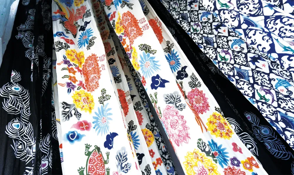 現在は、手ぬぐい、浴衣のほか、日傘やアロハシャツ、コースターなど各種日用品に用途は広がっています。