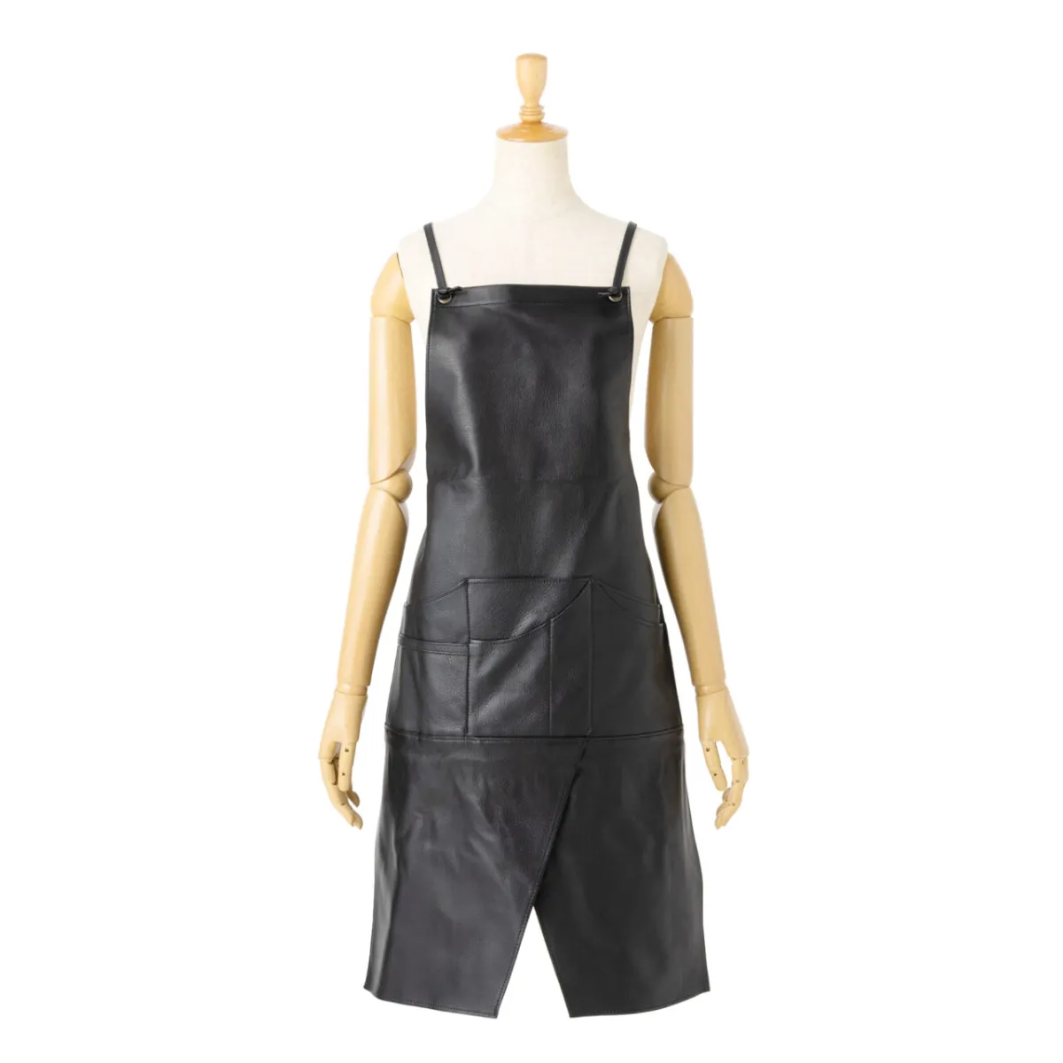 The ‘Washable Leather Hakama Apron’ offers stylish protection against dirt and water damage, making full use of the quality of its high-quality materials. It is what you would call a bib apron that covers the chest area and is suitable for people of all ages and genders. Unlike typical genuine leather garments that feel rather stiff and uncomfortable, this apron has a split hem like the shape of a hakama (casual kimono), allowing for easy movement whether it’s squatting or standing.