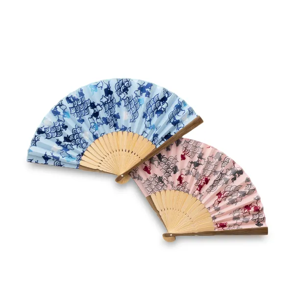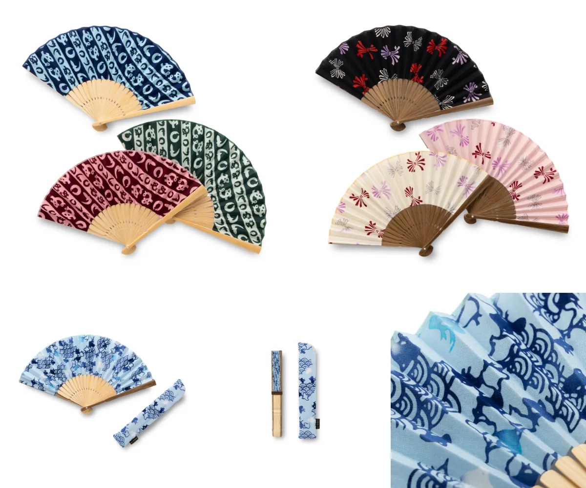 This fan is crafted from three types of traditional Japanese patterned fabric, all dyed using the chusen technique. Taking advantage of chusen’s unique characteristic—having no distinct front or back—the fan is made from a single piece of fabric, resulting in a lightweight design. It is constructed from durable cotton fabric, which adds to its appeal. The vivid colors bring a touch of brilliance to everyday life.