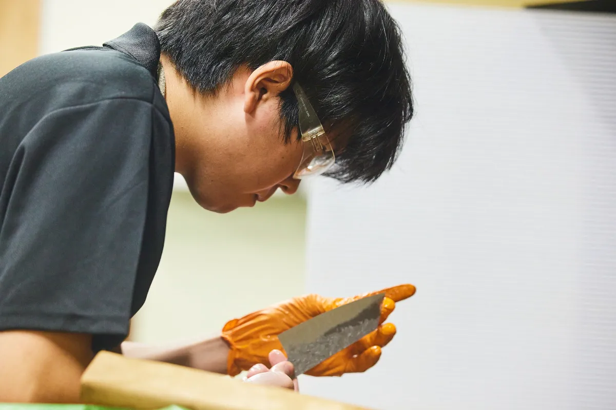 Actually, the chairman had long held a desire to produce knives in-house. This ambition aligned perfectly with Mr. Maruyama’s goal of becoming an artisan. In the spring of 2019, as Mr. Maruyama entered his third year of training, the workshop finally opened its doors.