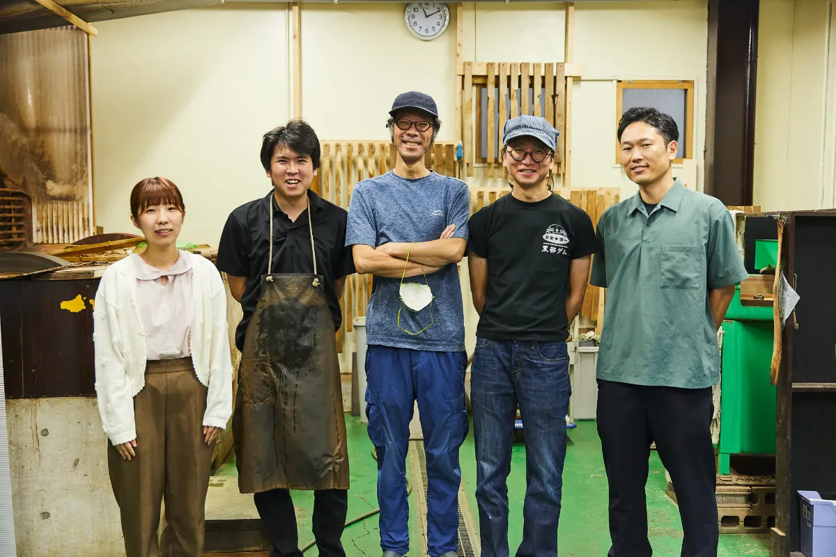 The team behind “HADO” includes artisans Tadataka Maruyama, Naohiro Nomura, and Takafumi Tsuda; Yoshio Ichikawa, who leads sales planning; Mai Kashiwagi from sales; and the sixth-generation president, Motonari Fukui—just six people, but a truly skilled and focused group.