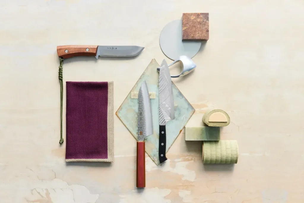 包丁やキャンプナイフ、手ぬぐい、畳の小物など逸品をご覧いただけます。