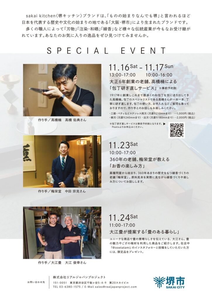 *は、包丁の研ぎ直しサービスや、デモンストレーションなどスペシャルイベントを行います。
