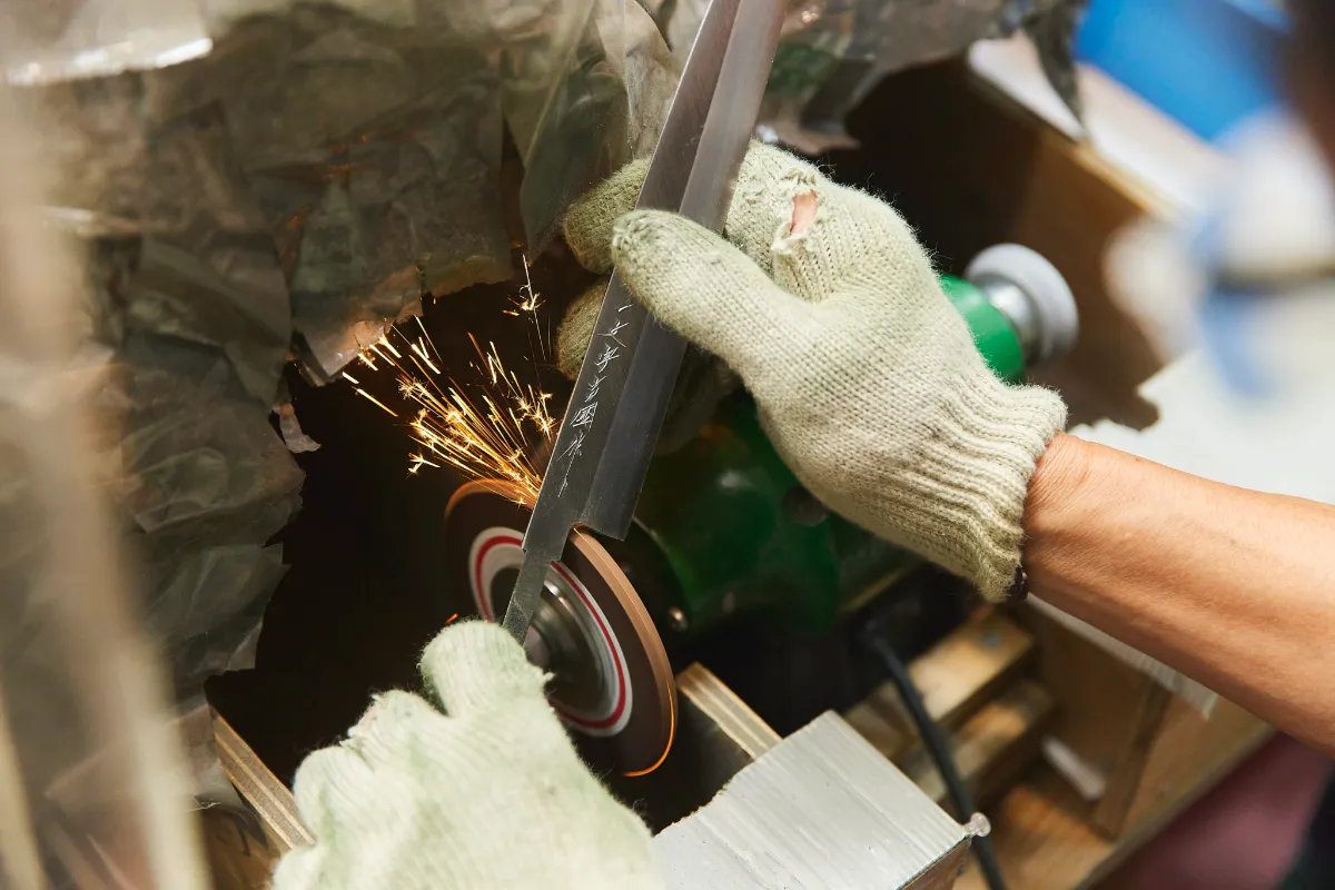 「鍛造」とは、読んで字のごとく「金属を鍛えて造ること」。叩くほど刃の強度としなやかさが増します。鍛治職人が、燃え盛る炎の中で材料を真っ赤に熱し、金槌や動力ハンマーで叩き延ばす様子は圧巻です。