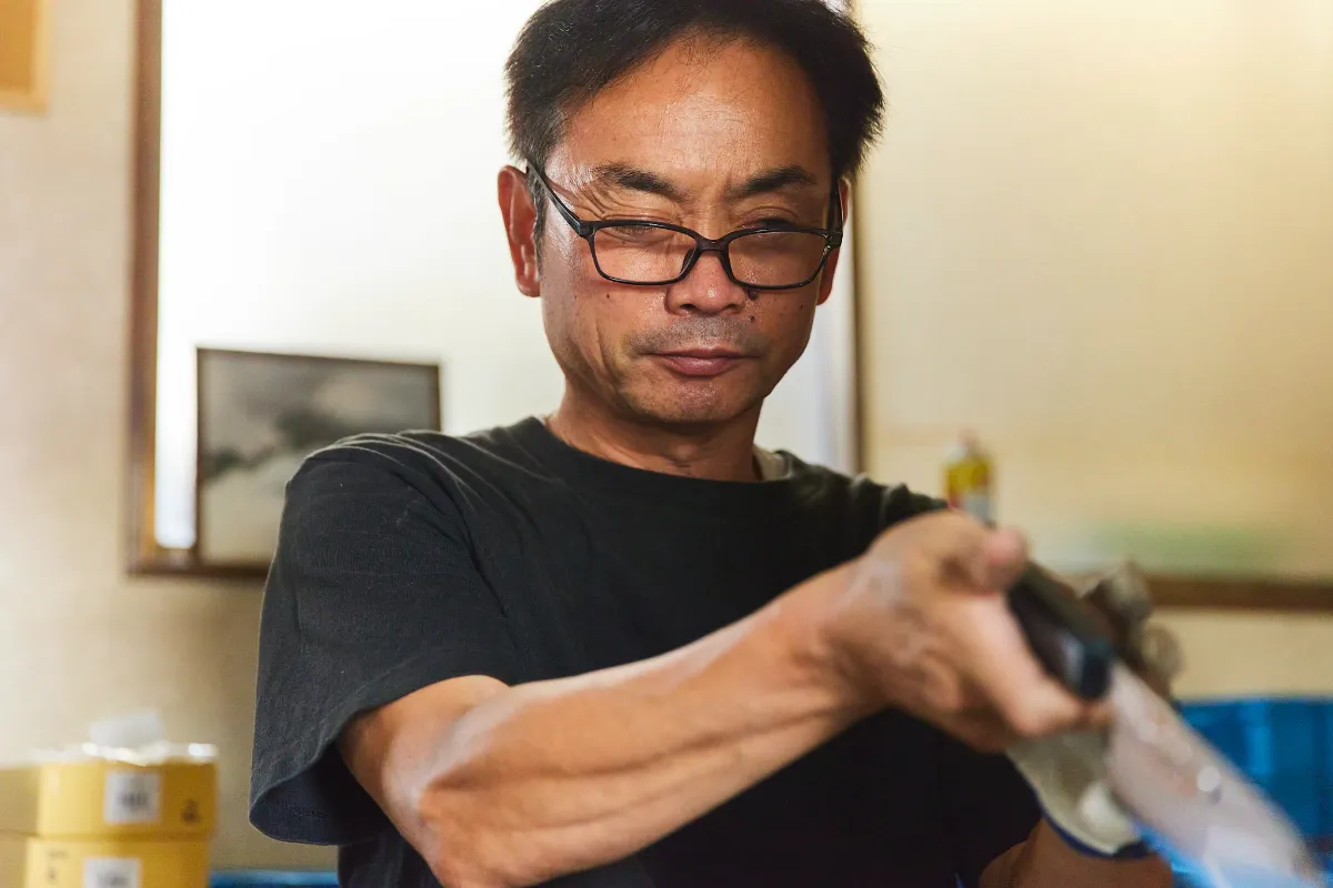 「完成品を手にとったとき、刃で最もよく使う部分(スイートスポット)に感覚がいくように仕上げます。簡単なようでセンスが問われる、奥の深い作業なんです」(博次さん)