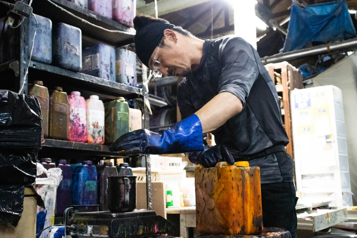「スクリーン捺染の歴史ではまだ若いが、古くからある染工場には負けたくない」という静かな闘志を胸に、今日も新しい色を染め上げています。