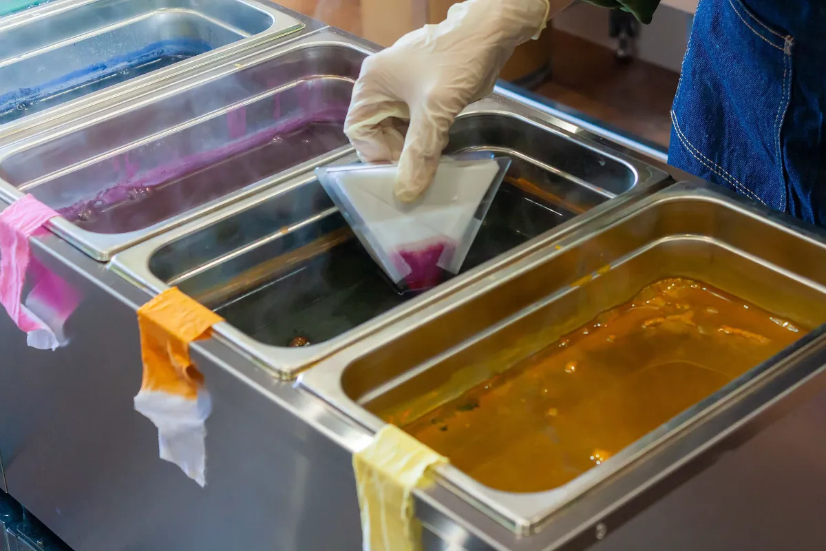 この成功を受け、2021年3月には社内に常設の体験工房を設置。家族連れや学生たちが、自分の手で染め上げる体験を楽しんでいます。海外からの参加者も多く、香港やアメリカなどから修学旅行で訪れるケースも多いといいます。