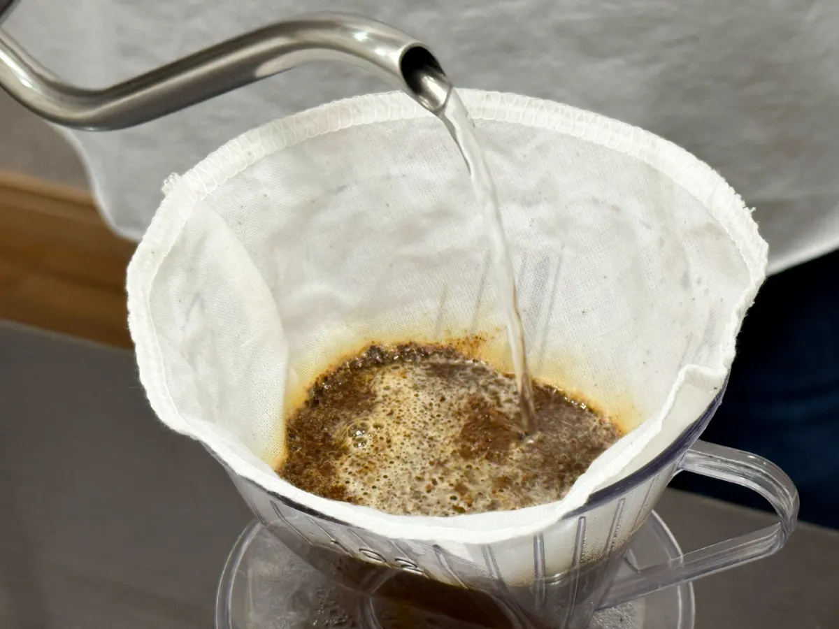 こうして生まれた和晒コーヒーフィルターの魅力は、なんといってもその味わいのまろやかさです。ペーパーフィルターでは失われがちなコーヒー豆本来の油分(コーヒーオイル)を適度に通すため、豆の持つ豊かな風味とコクを存分に引き出します。