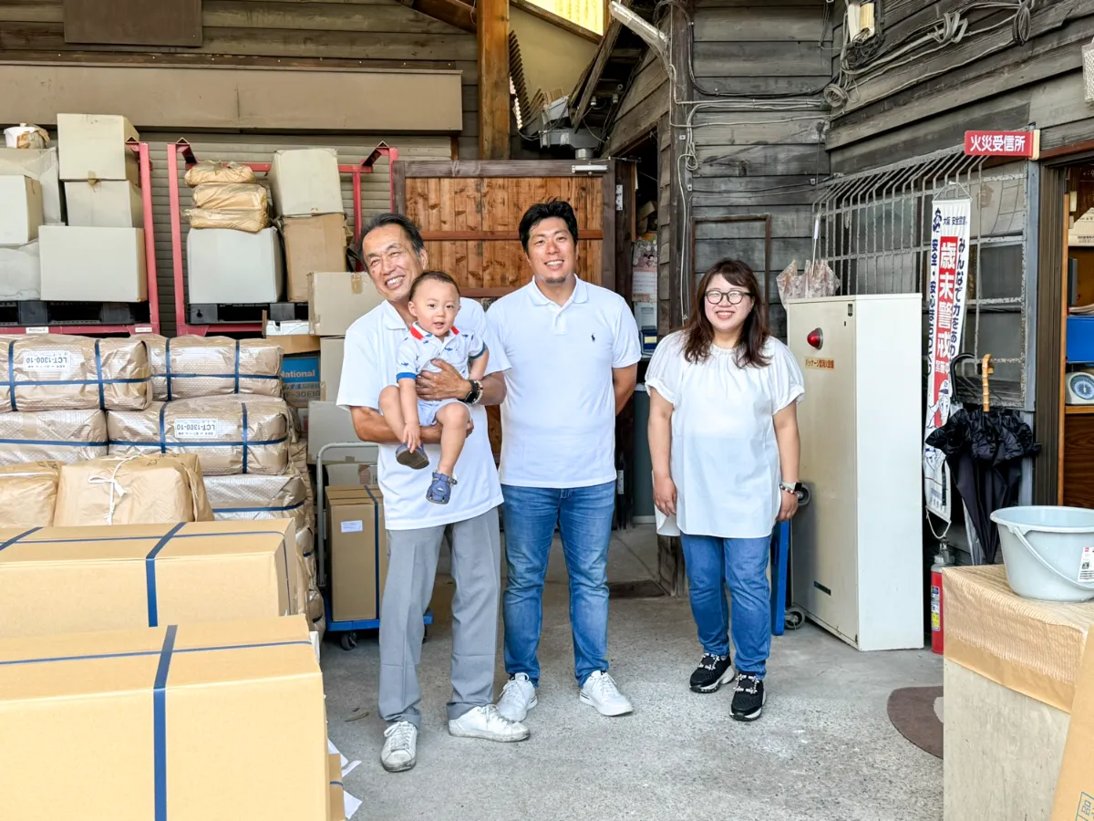 左から 4代目代表 武田清孝さん、お孫さん、専務 真一さん、「さささ」事業部の麻衣子さん